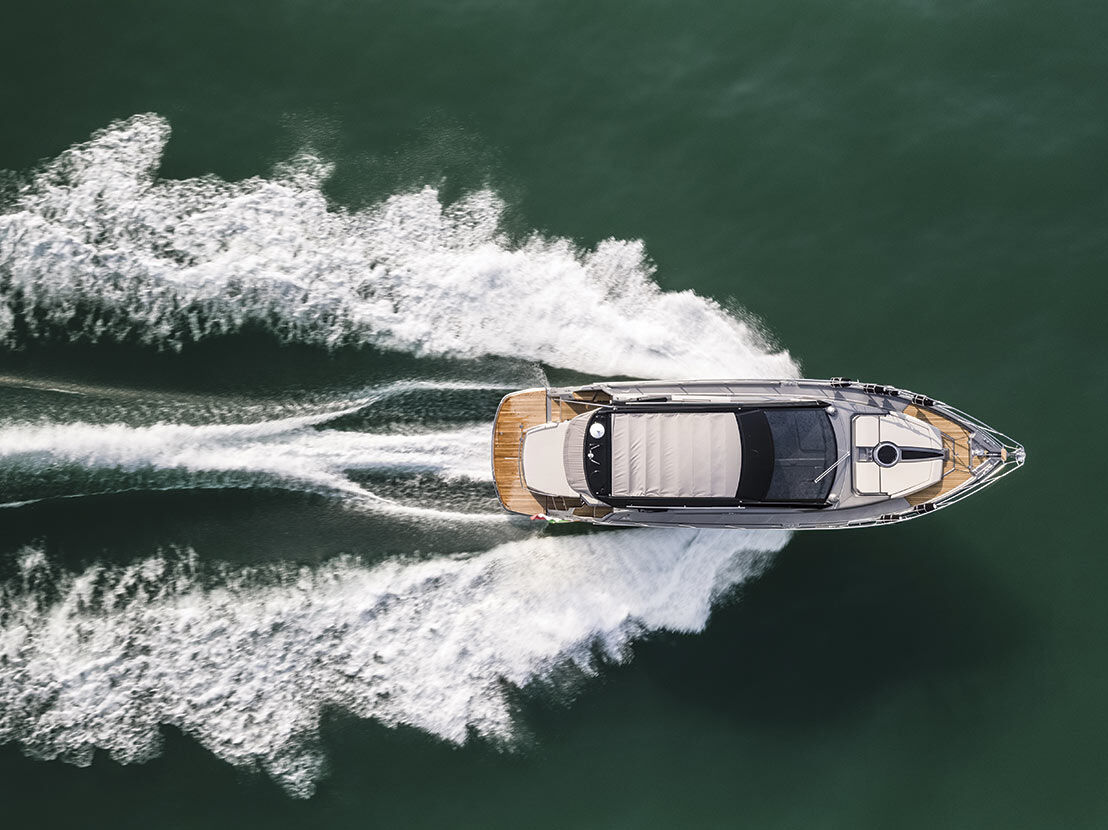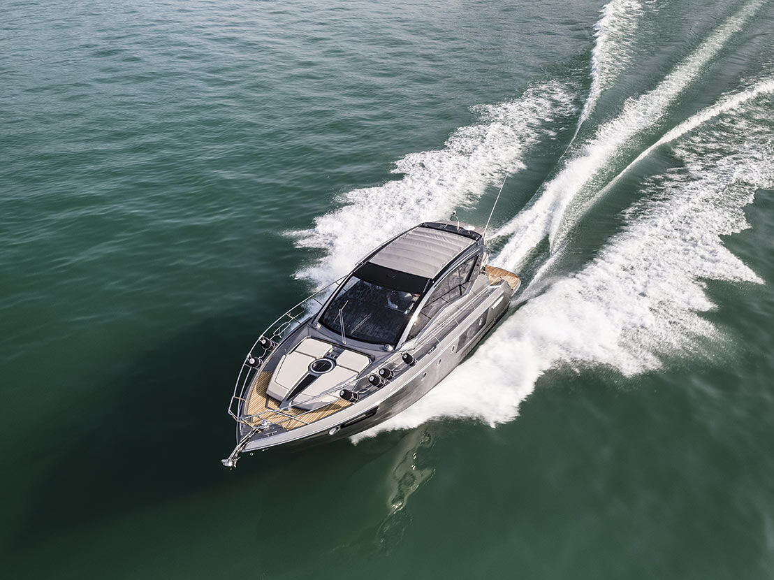 The soft top provides protection for the cockpit, while offering at the same time a large opening to transform Cranchi M44 HT into an authentic open. When needed, the insulated soft top creates an enclosed, warm environment.