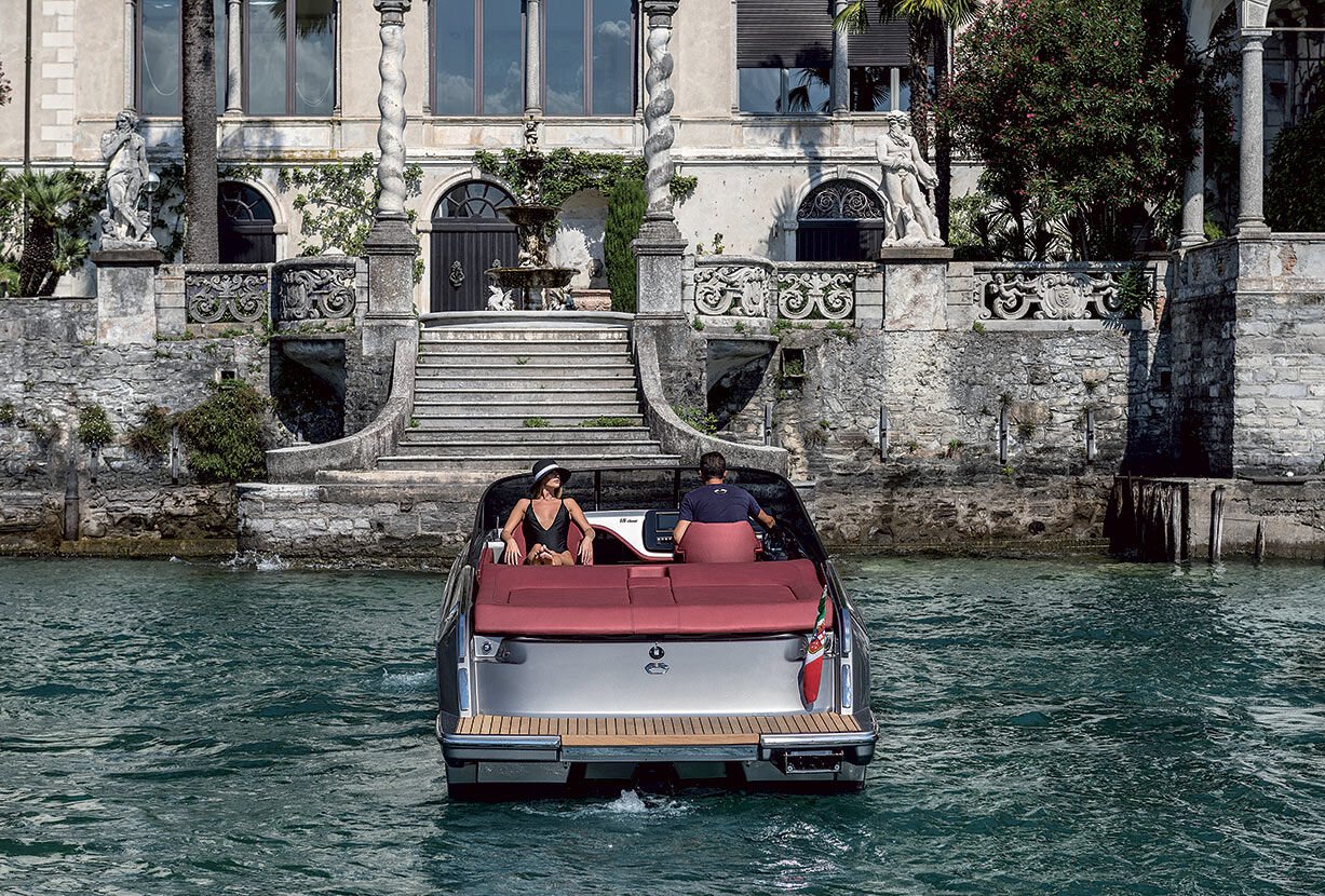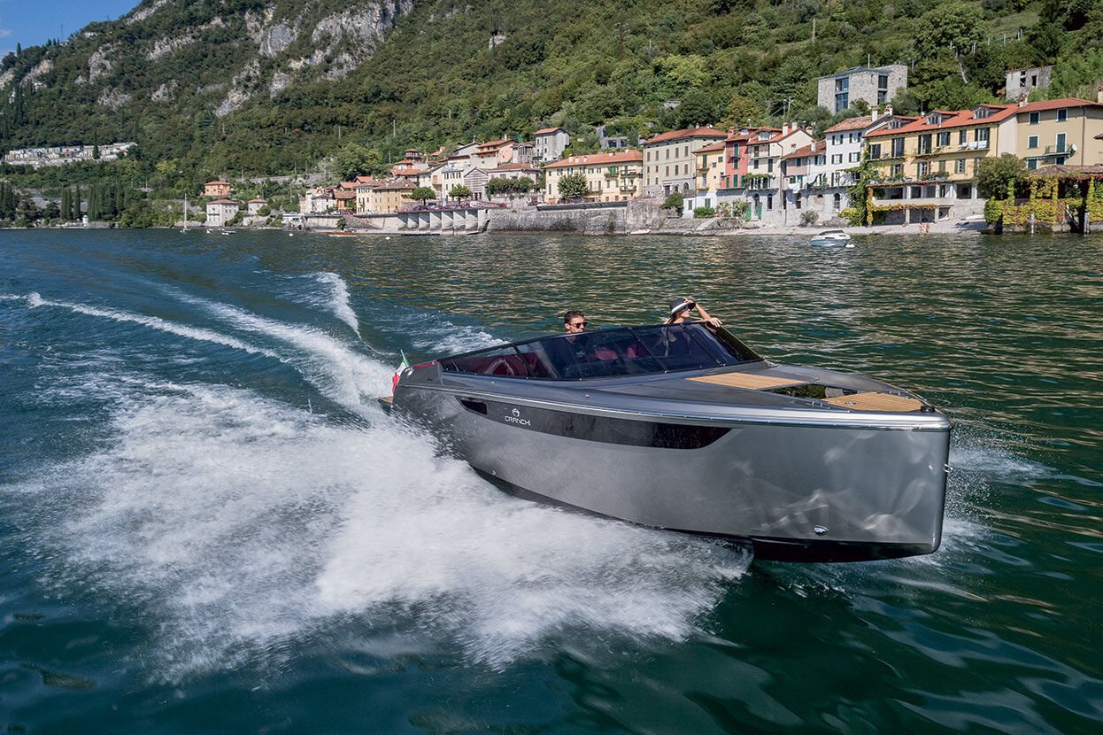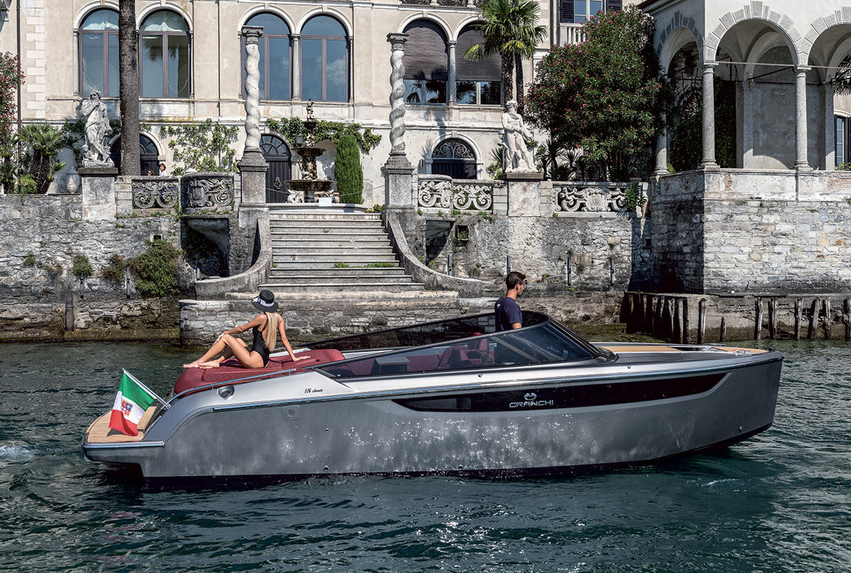 Der vertikale Bug, der das Profil der E26 Classic charakterisiert, vermittelt schon auf den ersten Blick den klassischen und sportlichen Charakter des Bootes, der durch die umlaufende Windschutzscheibe unterstrichen wird.